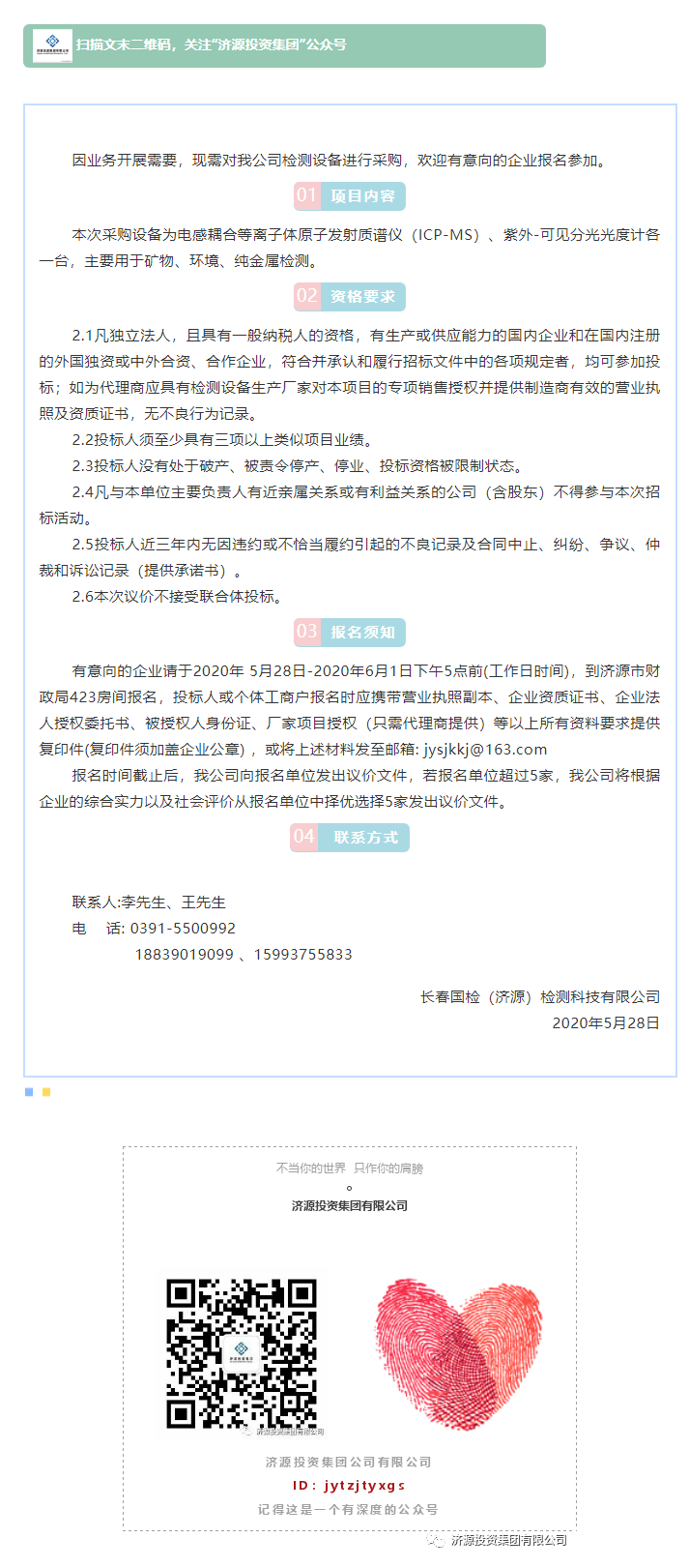 長(zhǎng)春國(guó)檢(濟(jì)源)檢測(cè)科技有限公司采購(gòu)ICP-MS、紫外可見分光光度計(jì)等檢測(cè)設(shè)備競(jìng)爭(zhēng)性議價(jià)公告