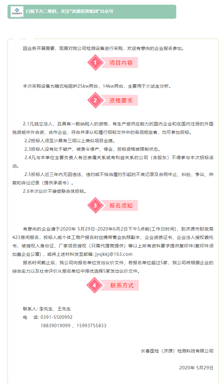 長(zhǎng)春國(guó)檢(濟(jì)源)檢測(cè)科技有限公司采購(gòu)箱式電阻爐檢測(cè)設(shè)備競(jìng)爭(zhēng)性議價(jià)公告