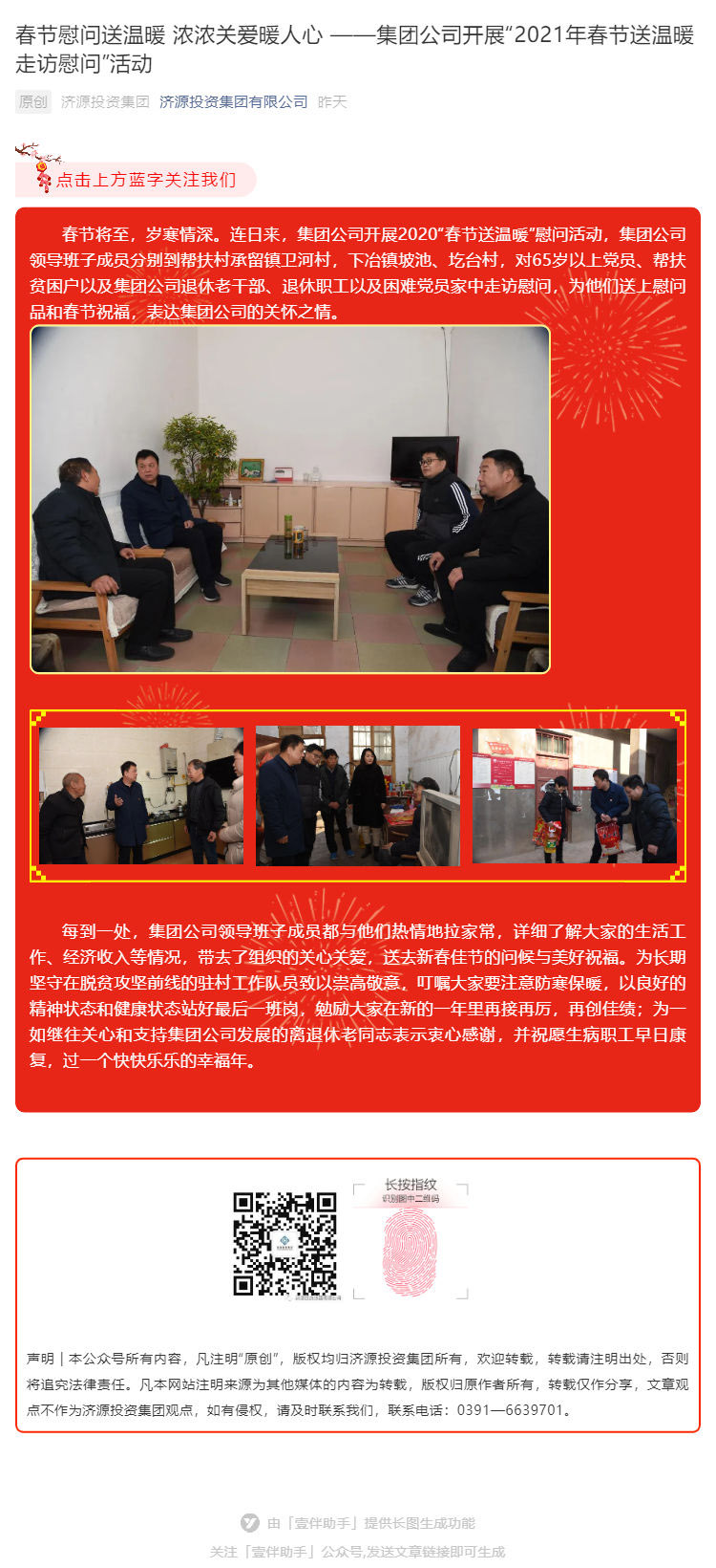 春節(jié)慰問送溫暖 濃濃關愛暖人心 ——集團公司開展“2021年春節(jié)送溫暖走訪慰問”活動