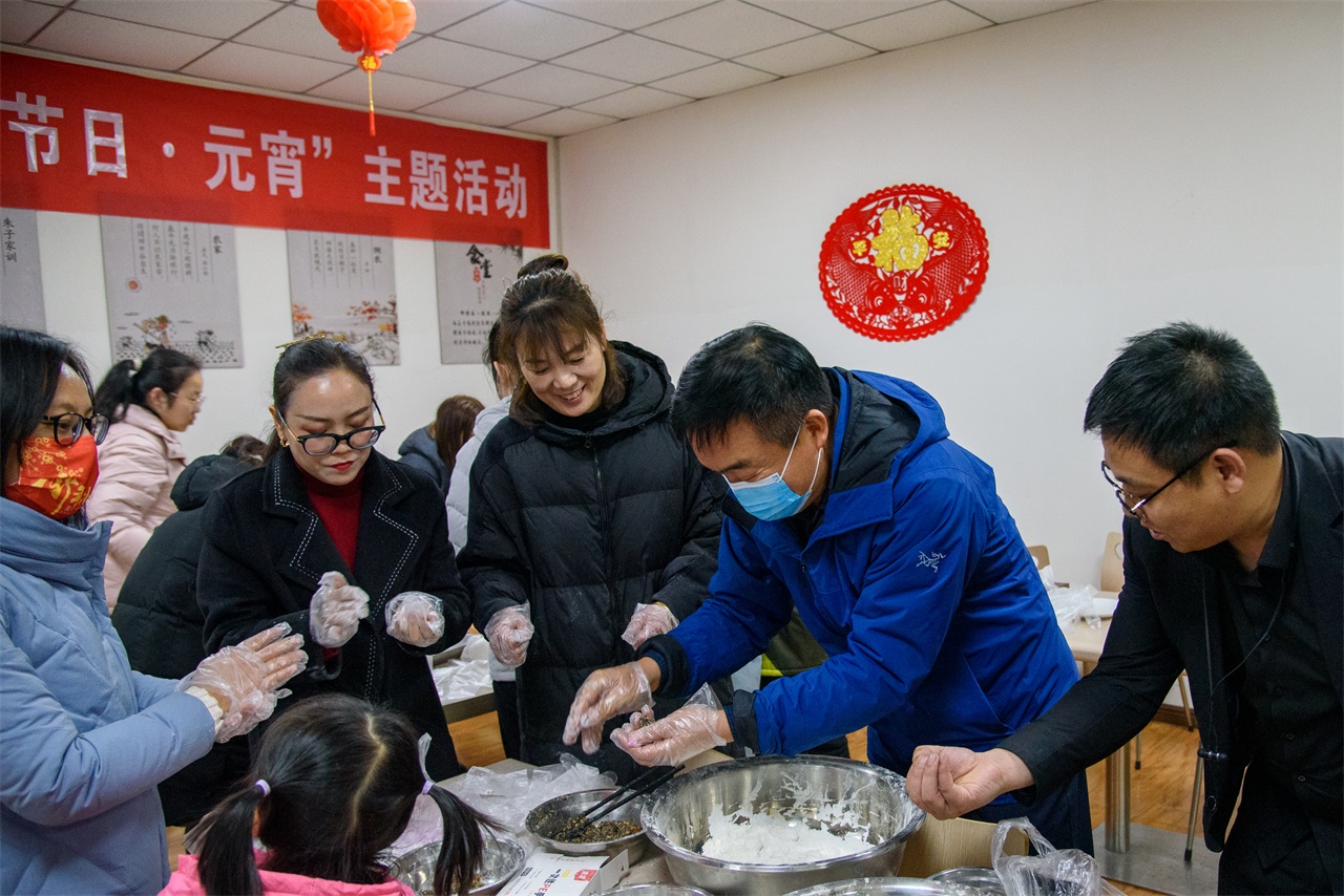 情暖元宵包湯圓活動。在職工餐廳活動現(xiàn)場一派熱鬧景象,大家拿出提前準(zhǔn)備好的糯米面粉、山楂餡兒、芝麻餡兒等材料,揉面的揉面,拌餡的拌餡,配合默契,好不熱鬧,大家邊做邊拿起手機拍照,歡聲笑語不絕于耳。