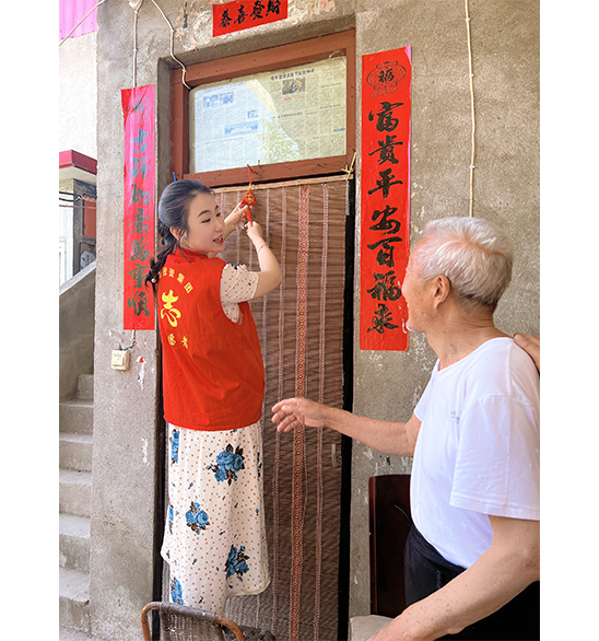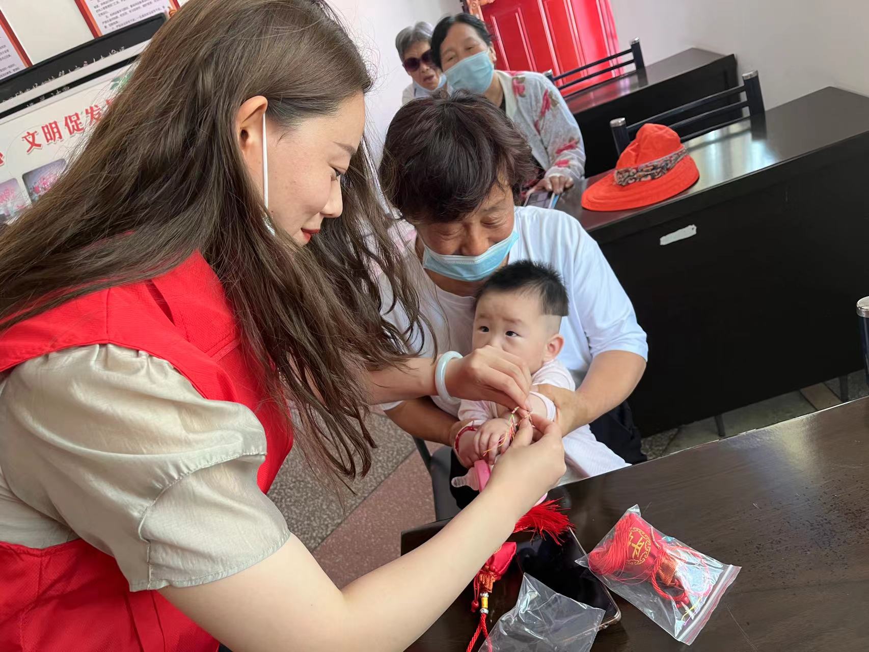 集團(tuán)志愿者深入新時(shí)代文明實(shí)踐站五龍口鎮(zhèn)古楊樹村,為困難黨員、低保戶家庭送去端午慰問品,為他們懸掛端午香包,讓村民們切實(shí)感受到節(jié)日的問候?!包h的政策好??!這些小伙子、小姑娘人真好,真貼心……” 老人感受到“志愿紅”的溫情,由衷地說道。