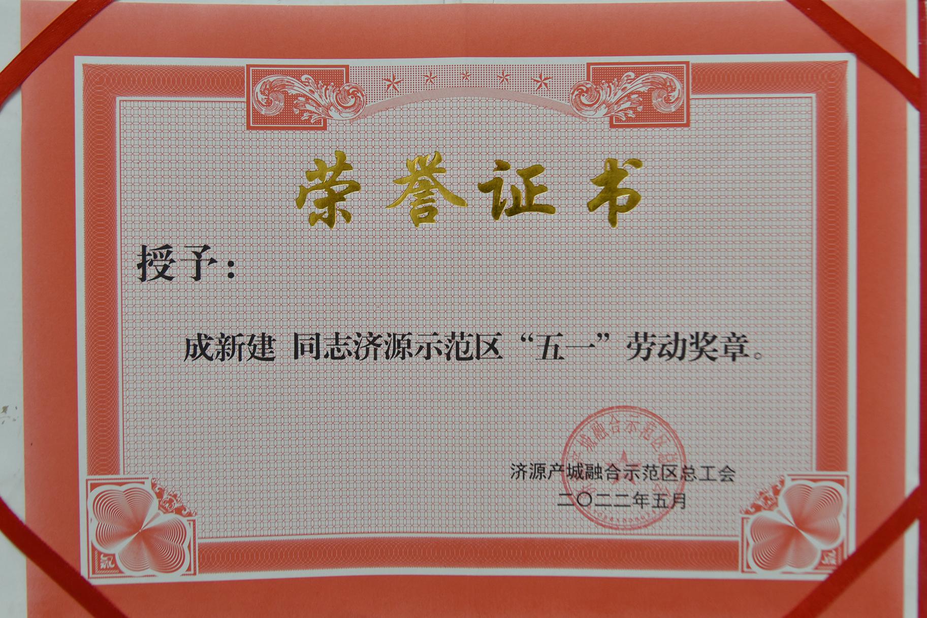 “五一”勞動(dòng)獎(jiǎng)狀