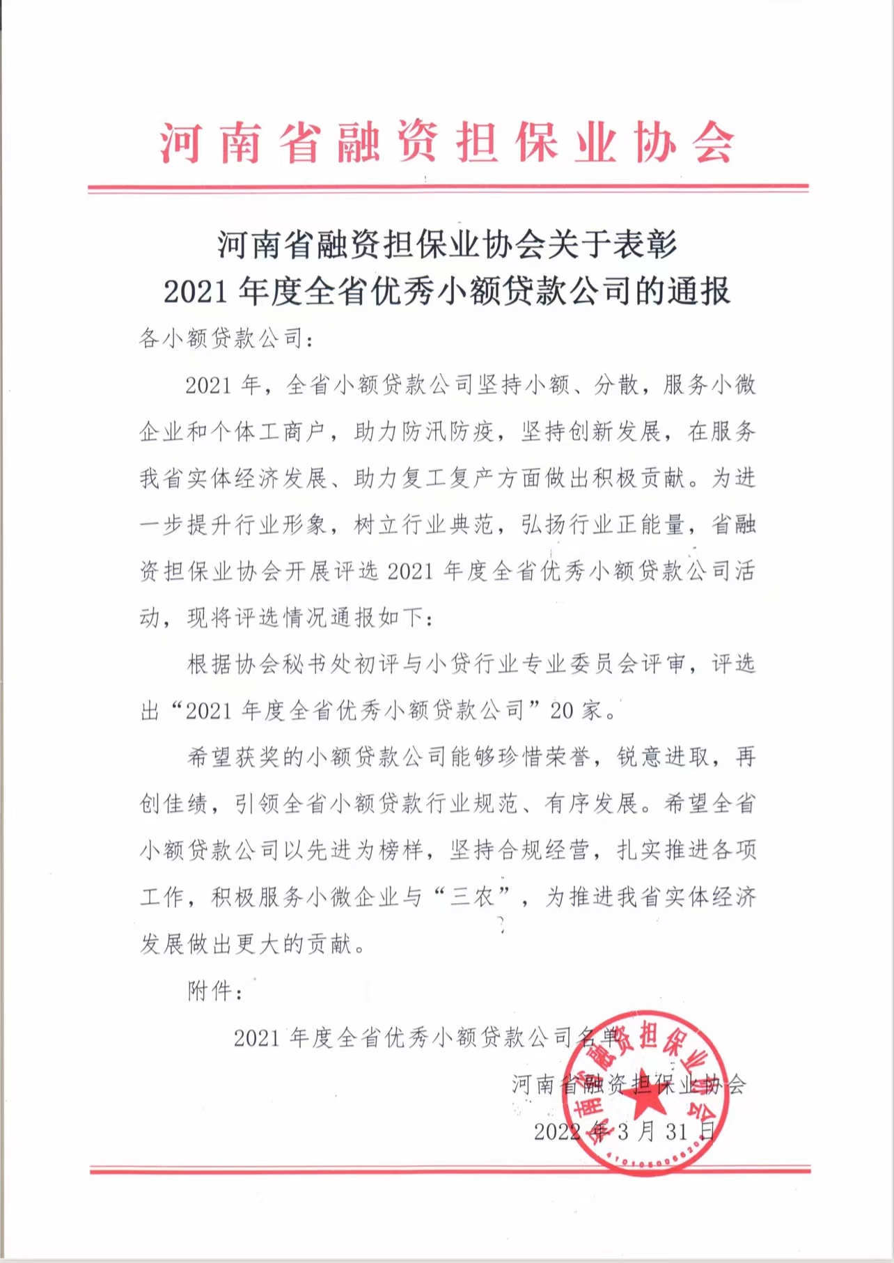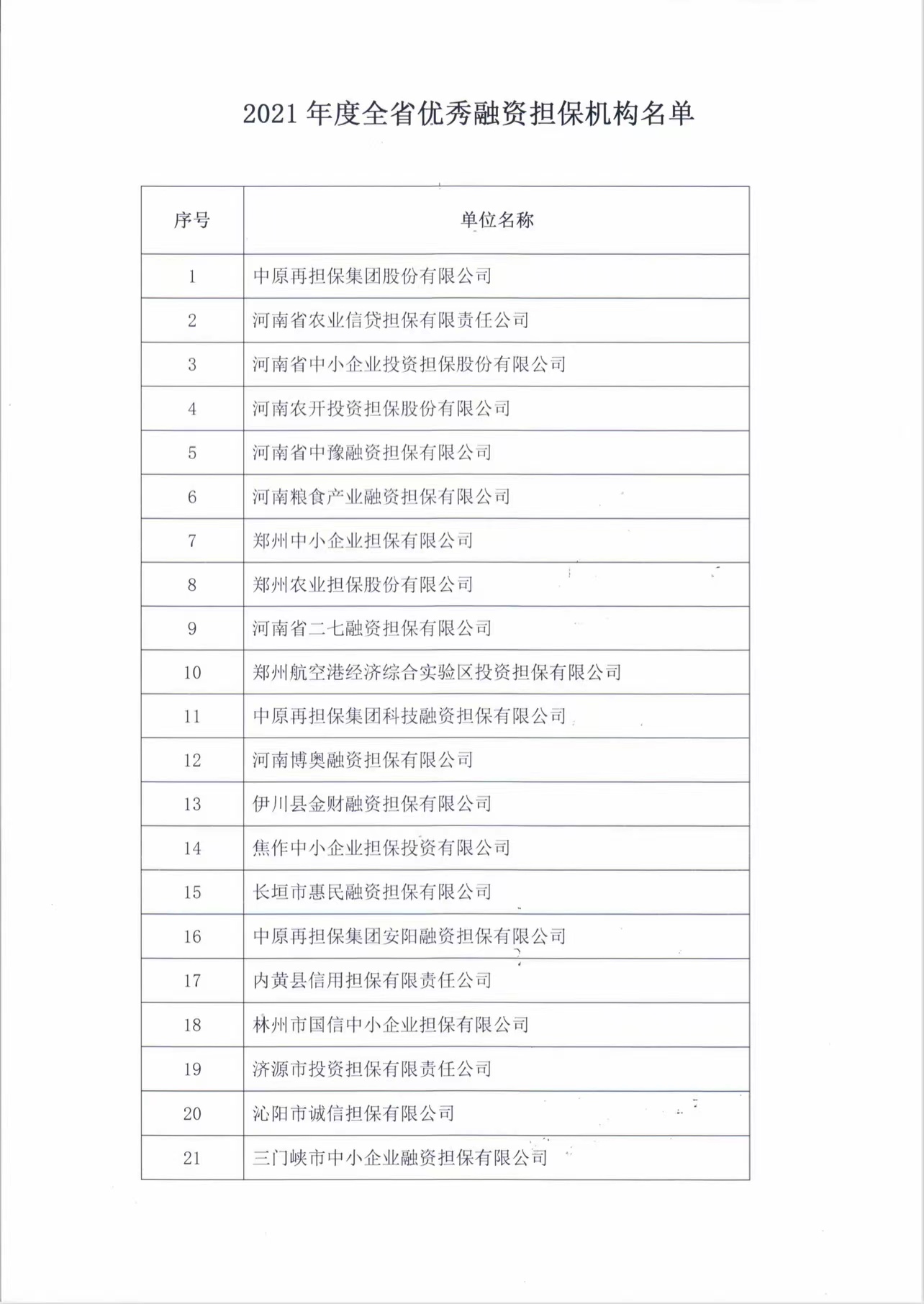 榮獲河南省融資擔(dān)保協(xié)會(huì)榮譽(yù)稱號(hào)