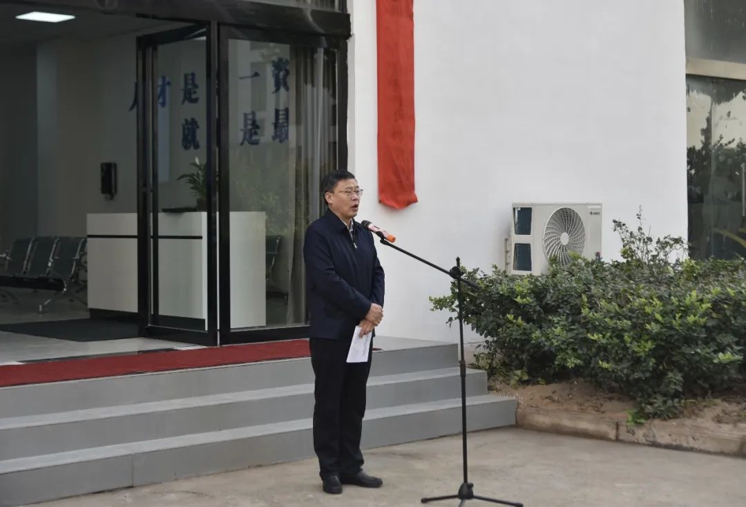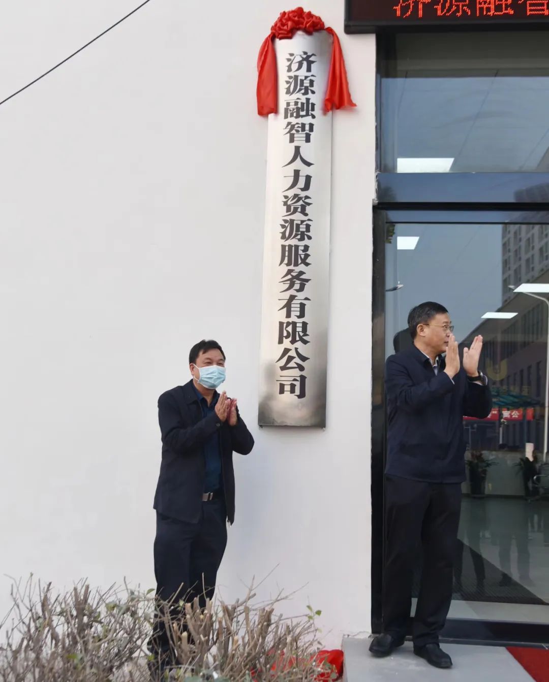示范區(qū)人社局黨組書(shū)記、局長(zhǎng)王劍波與濟(jì)源投資集團(tuán)黨委書(shū)記、董事長(zhǎng)陳明亮共同為濟(jì)源融智人力資源服務(wù)有限公司揭牌!