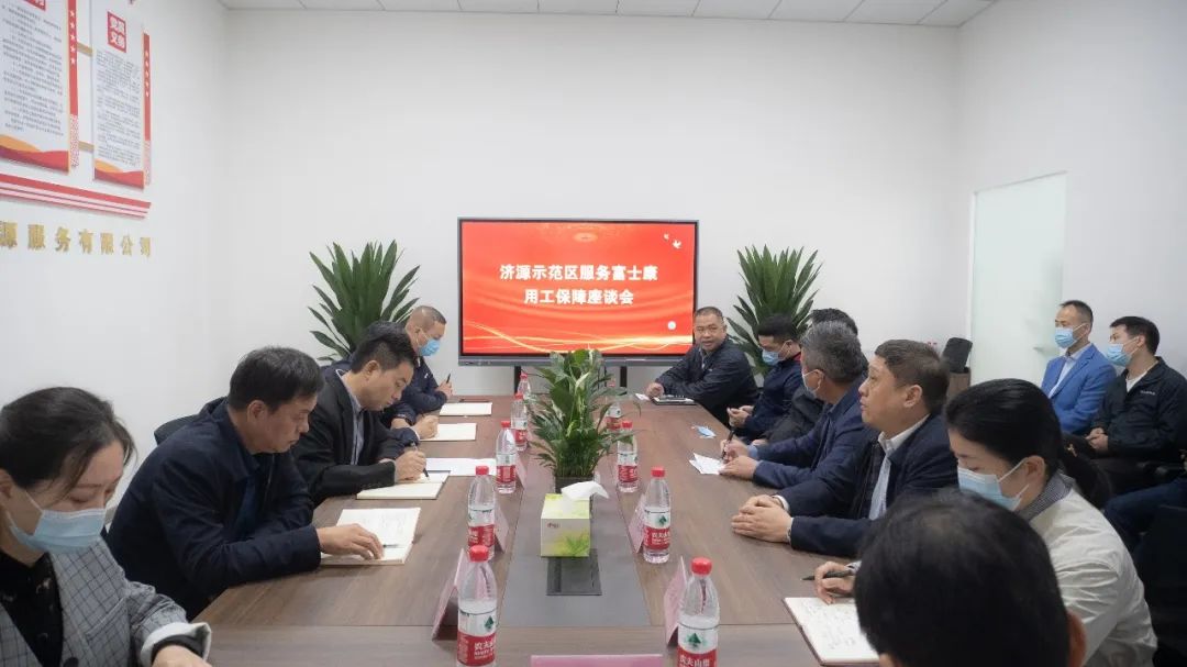10月19日,濟(jì)源示范區(qū)服務(wù)富士康用工保障辦公室暨濟(jì)源融智人力資源服務(wù)有限公司揭牌儀式舉行。示范區(qū)管委會(huì)黨組成員、副市長(zhǎng)趙會(huì)生出席揭牌儀式,并與相關(guān)負(fù)責(zé)人進(jìn)行座談。示范區(qū)人社局黨組書(shū)記、局長(zhǎng)王劍波,濟(jì)源投資集團(tuán)黨委書(shū)記、董事長(zhǎng)陳明亮,黨委委員、副總經(jīng)理成新建參加。