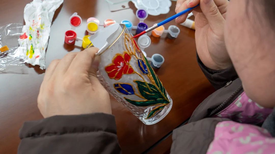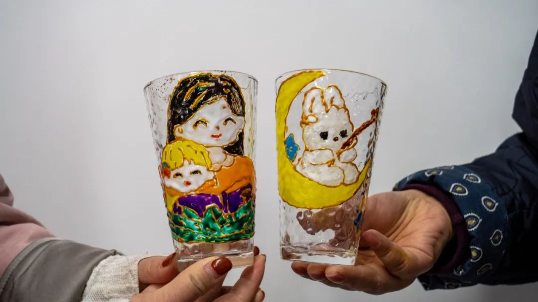 玻璃杯彩繪是近來熱門的創(chuàng)意手工活動。豐富的色彩、創(chuàng)作的專注,在放松身心、緩解壓力之余,更是能起到心靈療愈的效果?;顒又校毠円跃К撎尥傅牟AП瓰楫嫴?,用特制顏料勾勒出春日花卉、山水意境或個性圖案,每一筆都凝聚著對生活的熱愛和未來美好的期許。?