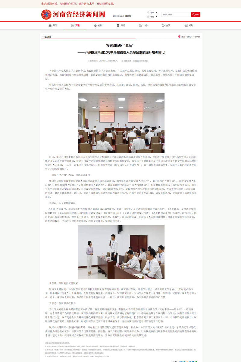 河南經(jīng)濟(jì)新聞網(wǎng):篤實圖新取“真經(jīng)” ——濟(jì)源投資集團(tuán)公司中高層管理人員綜合素質(zhì)提升培訓(xùn)側(cè)記