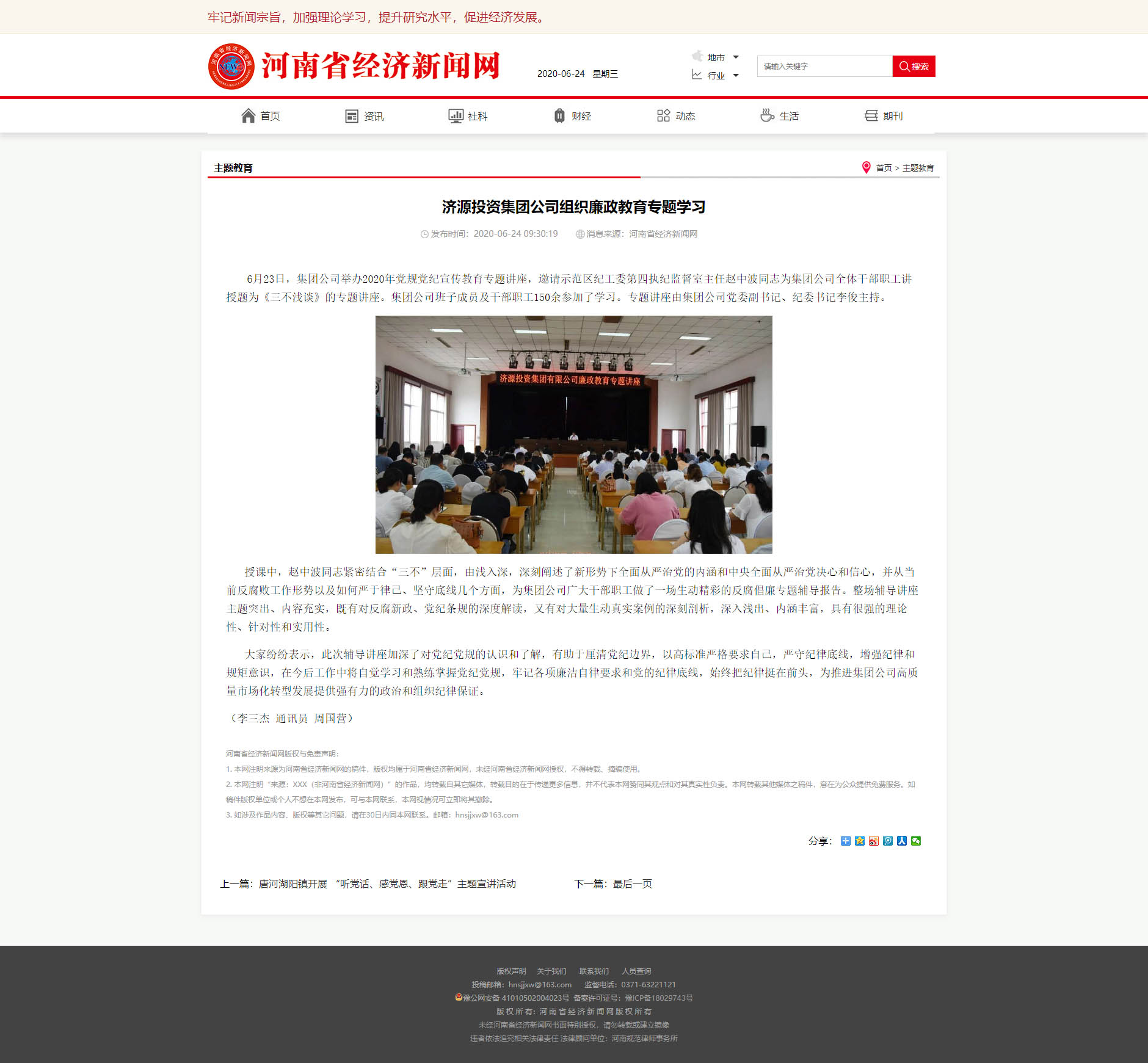 河南經(jīng)濟新聞網(wǎng):濟源投資集團公司組織廉政教育專題學(xué)習(xí)
