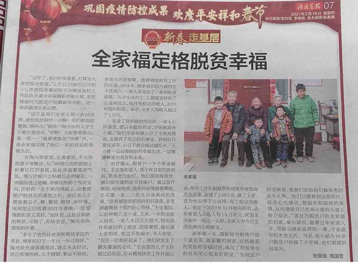 “過年了,我回村里看看,打算為大家拍張全家福。”2月12日(農(nóng)歷正月初一),濟(jì)源投資集團(tuán)駐下冶鎮(zhèn)坡池村工作隊(duì)隊(duì)長(zhǎng)兼全家福攝影師崔小斌,來到坡池村為脫貧戶拍攝新年合影。這一舉措贏得大家點(diǎn)贊。